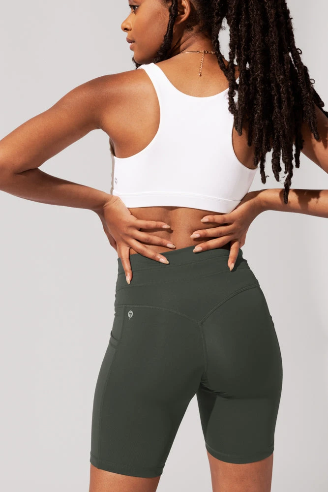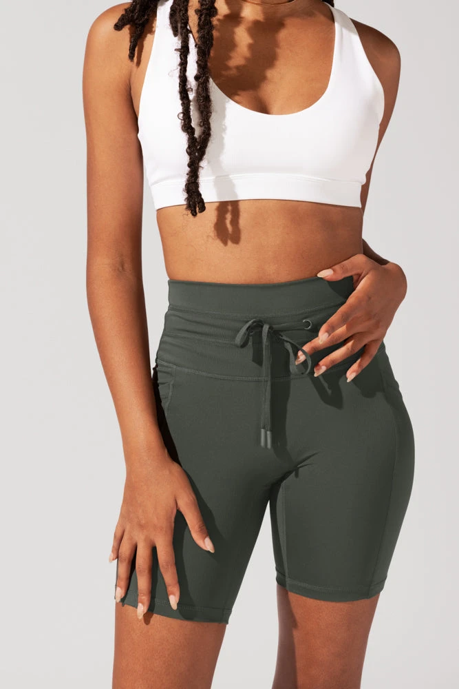 Our most-loved, adjustable drawstring waistband in an all-new silhouette. Meet the Cargo Biker Short. These form-fitting shorts feature a high-waisted cut, a seam-free anti-cameltoe front panel, and a V-shaped booty lifting back seam.Ā Bonus?Ā TheĀ fabric is so smooth it’s pet hair resistant too!