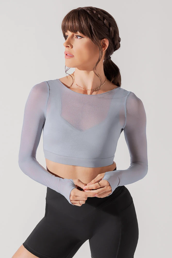The ethereal long sleeve mesh bra we’d envision a fairytale princess would do Pilates in. And yes, it has thumbholes.